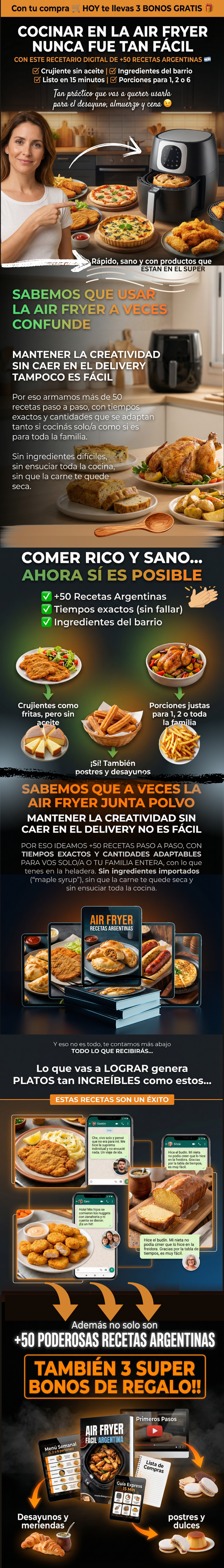 "Vivo solo y vivía a delivery. La Air Fryer la tenía de adorno. Con la guía aprendí a hacer milanesas y pollo en 15 min. El primer mes ahorré como $80.000 en pedidos. Se paga sola."